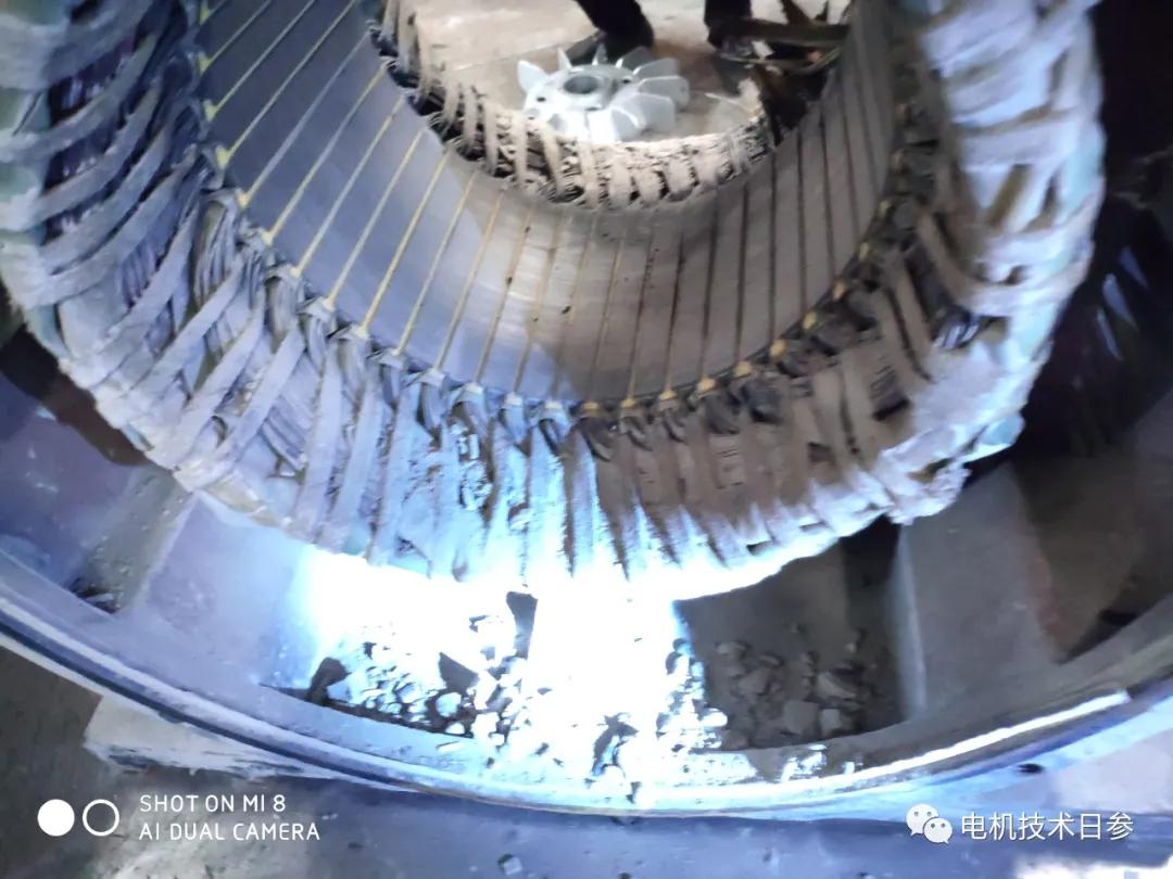 在故障電機的處理和分析過程中,發(fā)現(xiàn)IP23電機的繞組被污染和損壞,電機的繞組部分被灰塵覆蓋,特別是一些帶有導(dǎo)電材料的灰塵,對繞組的侵蝕更加嚴(yán)重。當(dāng)電機繞組被灰塵覆蓋時,繞組的散熱會受到嚴(yán)重阻礙。當(dāng)灰塵中有導(dǎo)電物體時,也會導(dǎo)致電機繞組接地、相間擊穿等質(zhì)量故障。如果灰塵進入定子和轉(zhuǎn)子之間的氣隙,或者進入軸承系統(tǒng),也可能導(dǎo)致電機掃膛的問題。