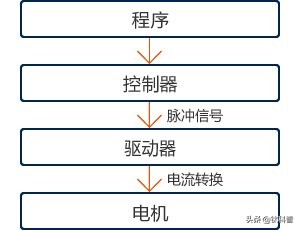 程序控制器(脈沖信號)驅(qū)動器(電流轉(zhuǎn)換)電機