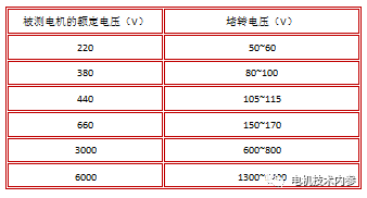 由試驗電源容量估算的外加電壓調(diào)整范圍應為被試電機額定電壓的10%~60%。對于100千瓦以下的電機,電源輸出電流應為額定電流;電機的1.4~1.7倍,100千瓦以上的電機電源輸出電流應為額定電流的1.2~1.5倍。堵轉(zhuǎn)試驗的電源為短期運行,連續(xù)定額的供電設備可超負荷50%。