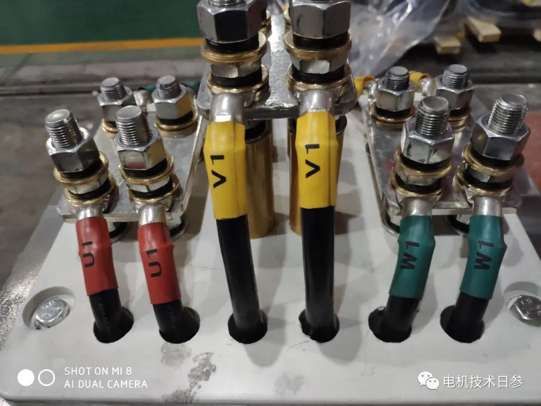 雙電壓電機在制造過程中的連接與轉換:對于需要按雙電壓法連接的電機,在制造過程中按三相頭尾預留六個頭,最后六個頭可靠地固定在接線板上,通過連接件實現(xiàn)不同的連接方式進行短路,以滿足不同的電壓運行接線要求。