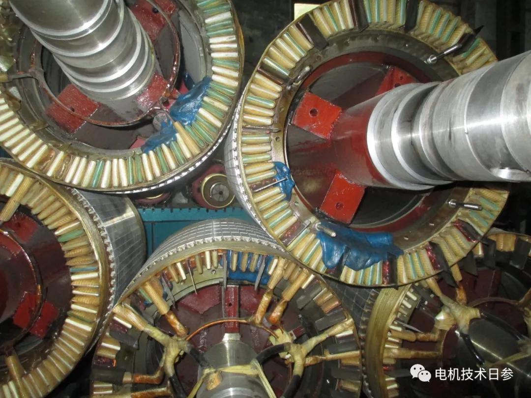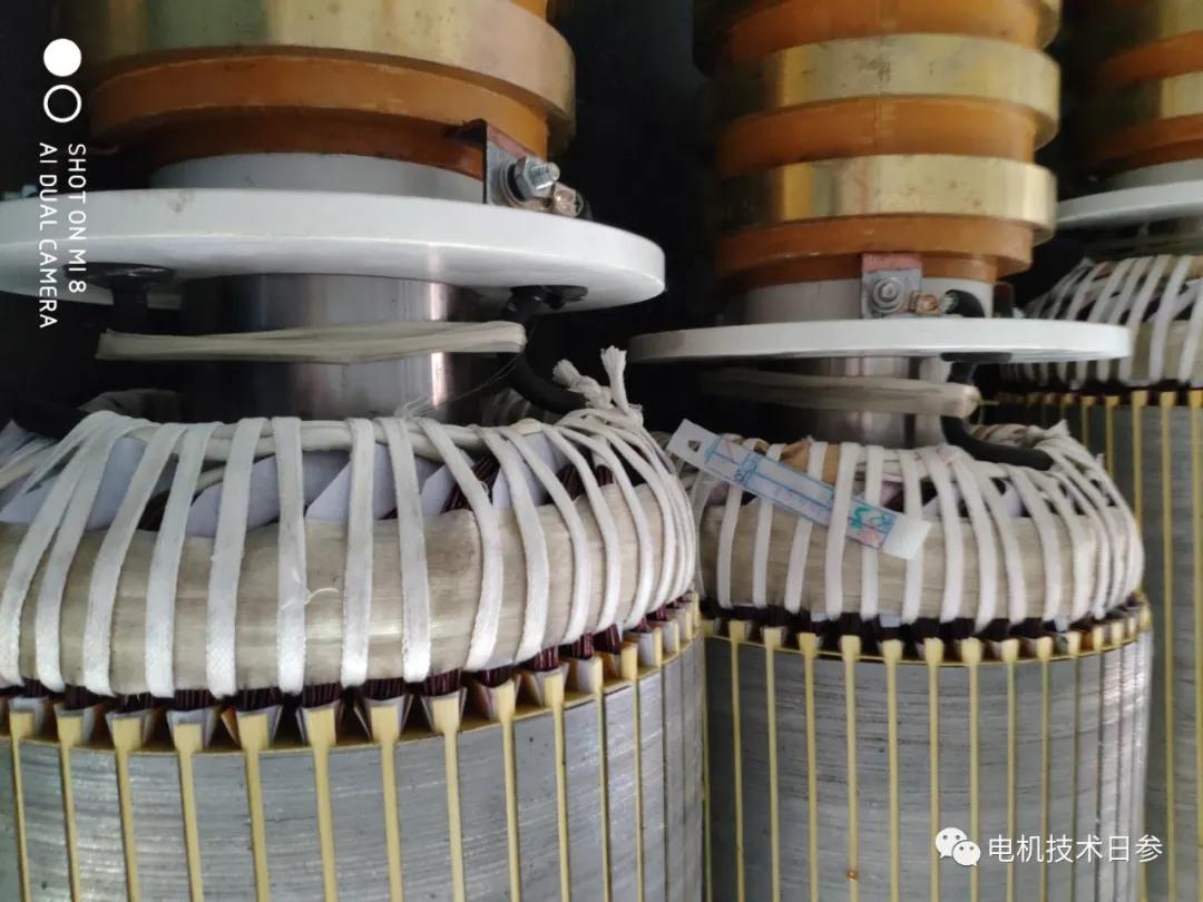 對于轉(zhuǎn)子部分,如果條件允許,建議使用模壓繞組。一方面可以提高繞組的機械強度;另一方面,轉(zhuǎn)子的成型繞組相當于風壓元件,可以在一定程度上改善繞組的通風散熱。必須加強轉(zhuǎn)子軟繞組端部的徑向固定,以防止端部向內(nèi)或向外變形導致電氣或機械故障。