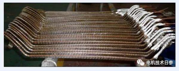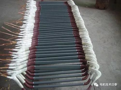 對于在槽縫和端部有連續(xù)或不同糊化時間的云母粉帶的線圈,端部絕緣厚度可適當減小,約為槽縫厚度的70~80%。對于套管絕緣或端部絕緣為黑色玻璃漆布帶的線圈,端部厚度不應變薄,搭接處的絕緣應適當加強。