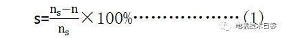 交流異步電動(dòng)機(jī)的轉(zhuǎn)差率s(%)是這類電動(dòng)機(jī)極其重要的性能參數(shù)。它是轉(zhuǎn)子速度n(r/min)與定子旋轉(zhuǎn)磁場速度之差的百分比,即同步速度ns(r/min),由公式(1)計(jì)算。
