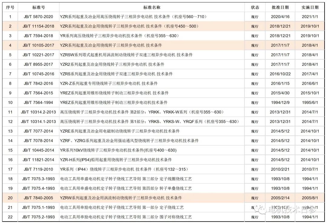 對(duì)于電機(jī)產(chǎn)品,采用的技術(shù)標(biāo)準(zhǔn)大多是行業(yè)標(biāo)準(zhǔn),也有少數(shù)國(guó)家標(biāo)準(zhǔn)。本文收集了3個(gè)國(guó)家標(biāo)準(zhǔn)目錄(見圖1)和22個(gè)行業(yè)標(biāo)準(zhǔn)目錄(見圖2),涉及電機(jī)產(chǎn)品技術(shù)條件、繞組技術(shù)等相關(guān)內(nèi)容。
